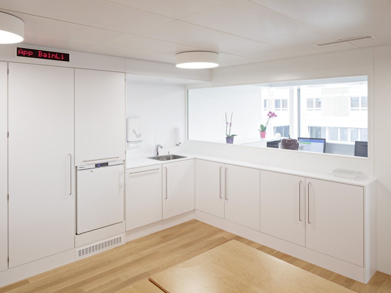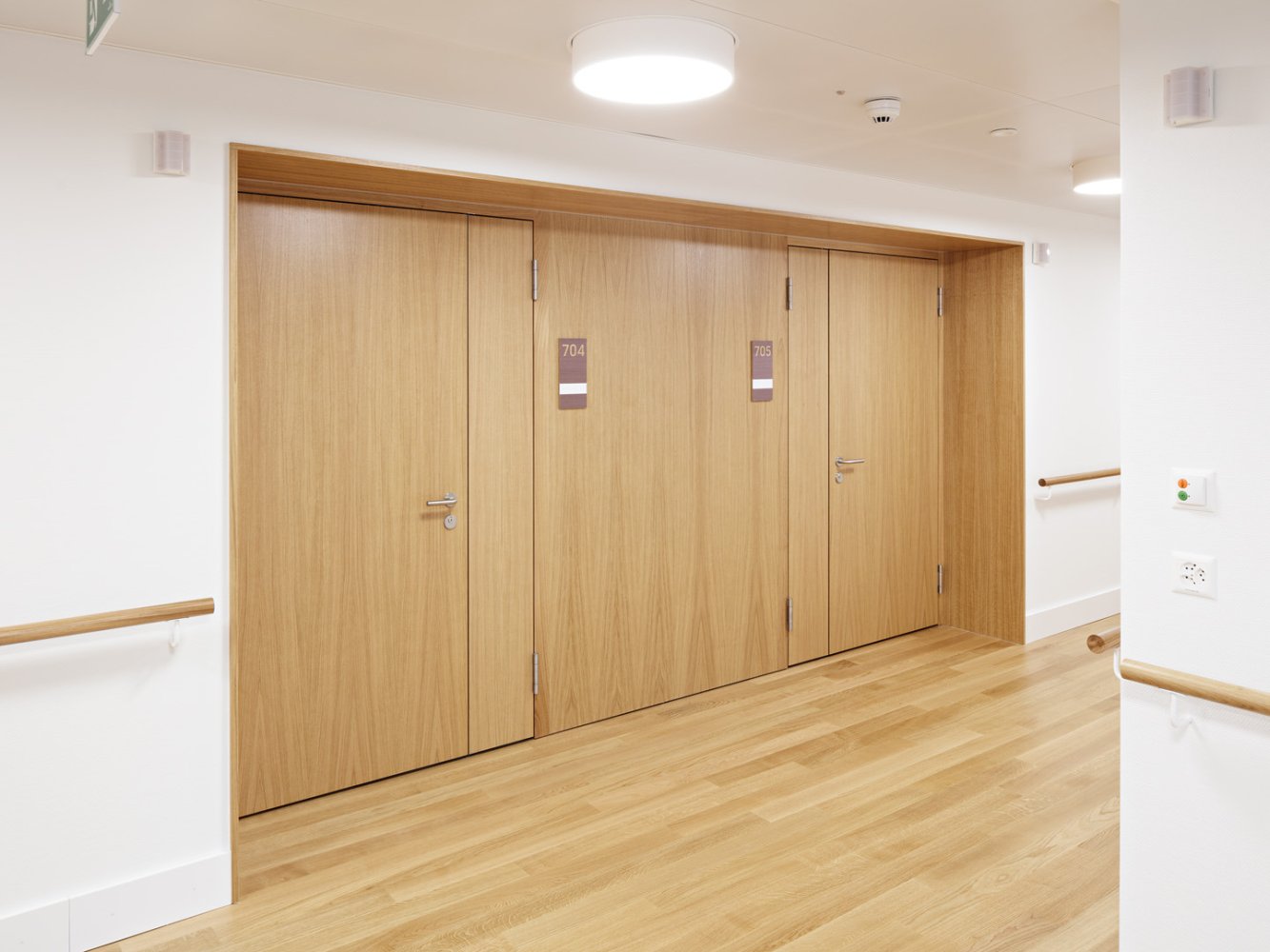 Pour cette référence à Villars-sur-Glâne dans le canton de Fribourg, nous avons réalisé les portes et vitrages intérieurs en bois EI30, des portes coulissantes EI30, des armoires ainsi que des agencements de bureau.